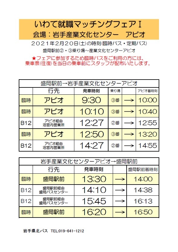 8/12(木)開催予定の「いわて就職マッチングフェアⅣ」につきましては、新型コロナウイルスの感染が岩手県を含む全国において前例のない勢いで急速に拡大している現状を踏まえ、中止することといたしましたのでお知らせします。